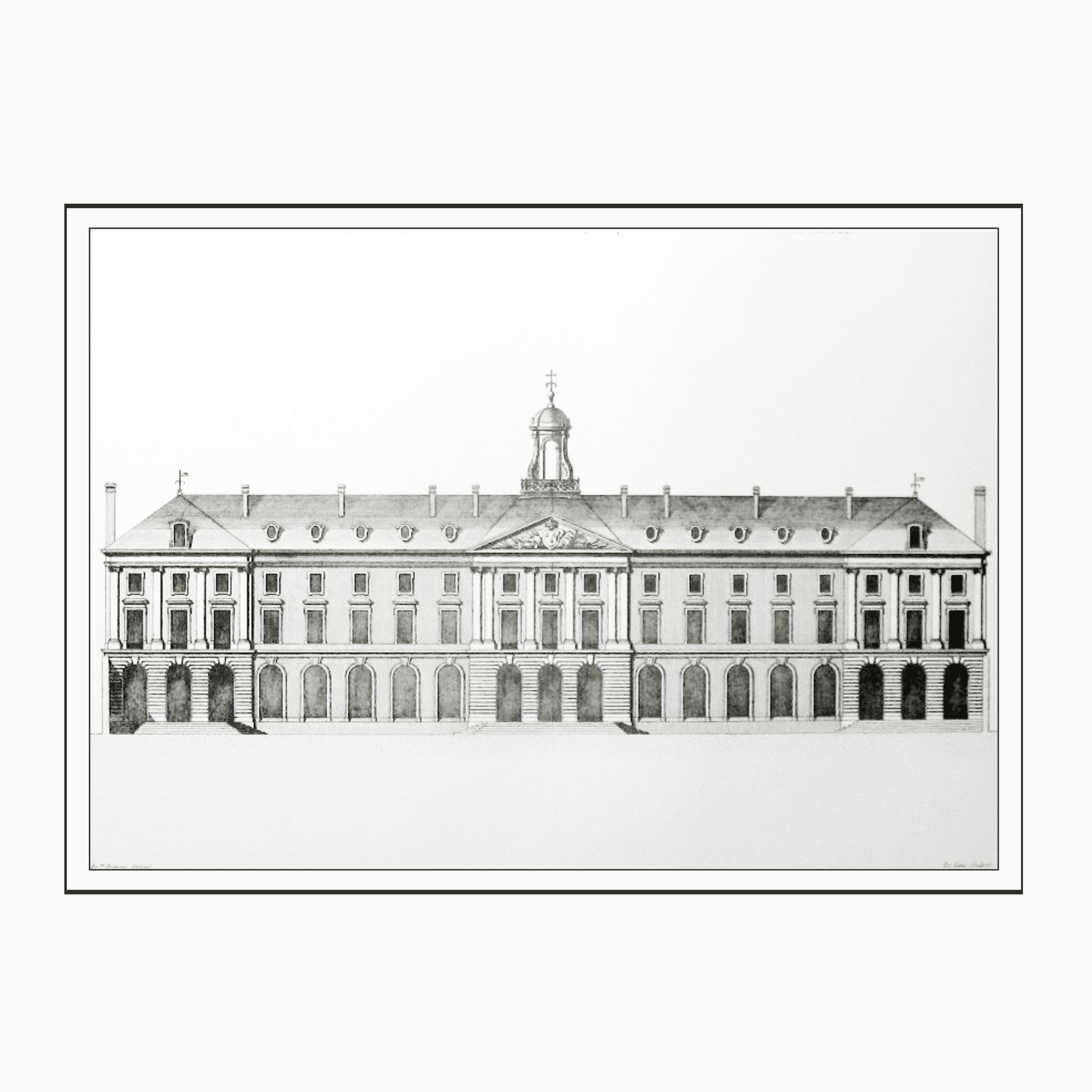 Black and white architectural prints are unique in their ability to enhance almost any décor. They may be framed formally with French style matting or with a modern lineal profile.
