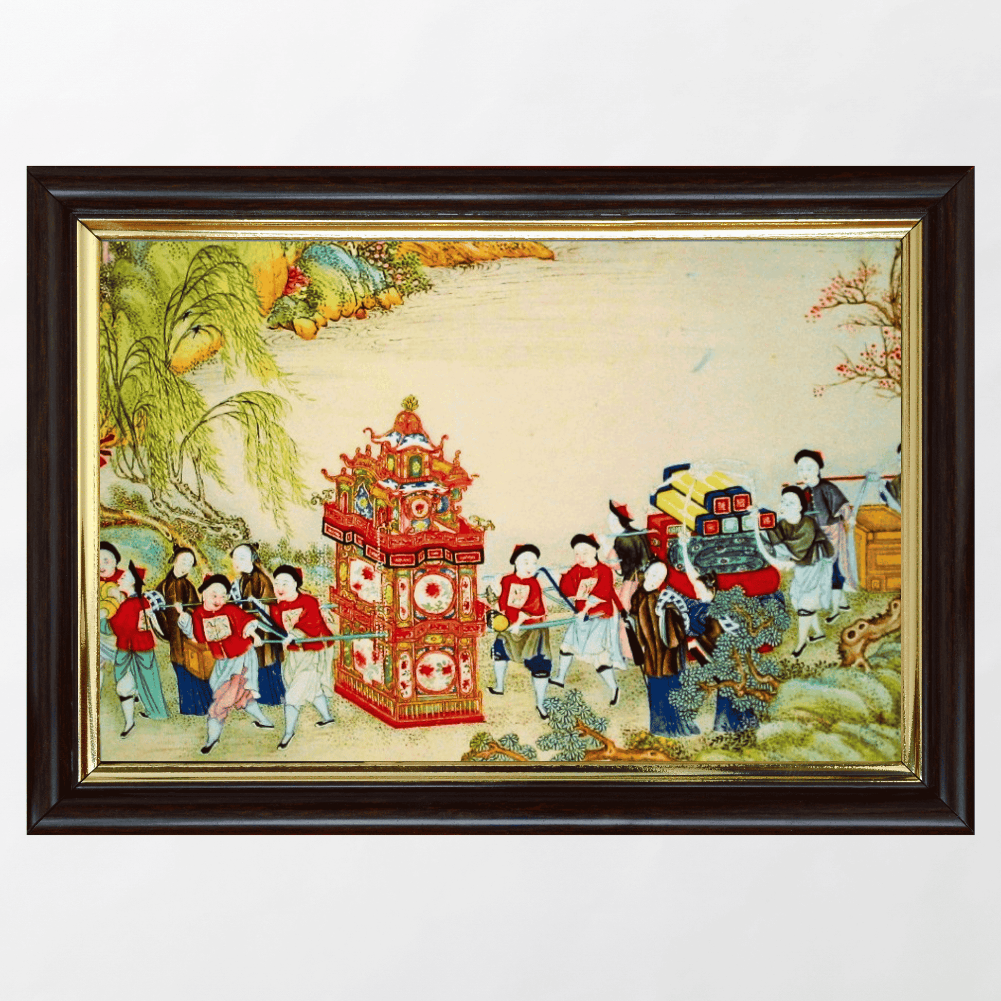 Our Chinese Wedding prints were reproduced from a series of early 19th century paintings done in Northern China. There were originally 35 scenes in the series of which we selected the best four.