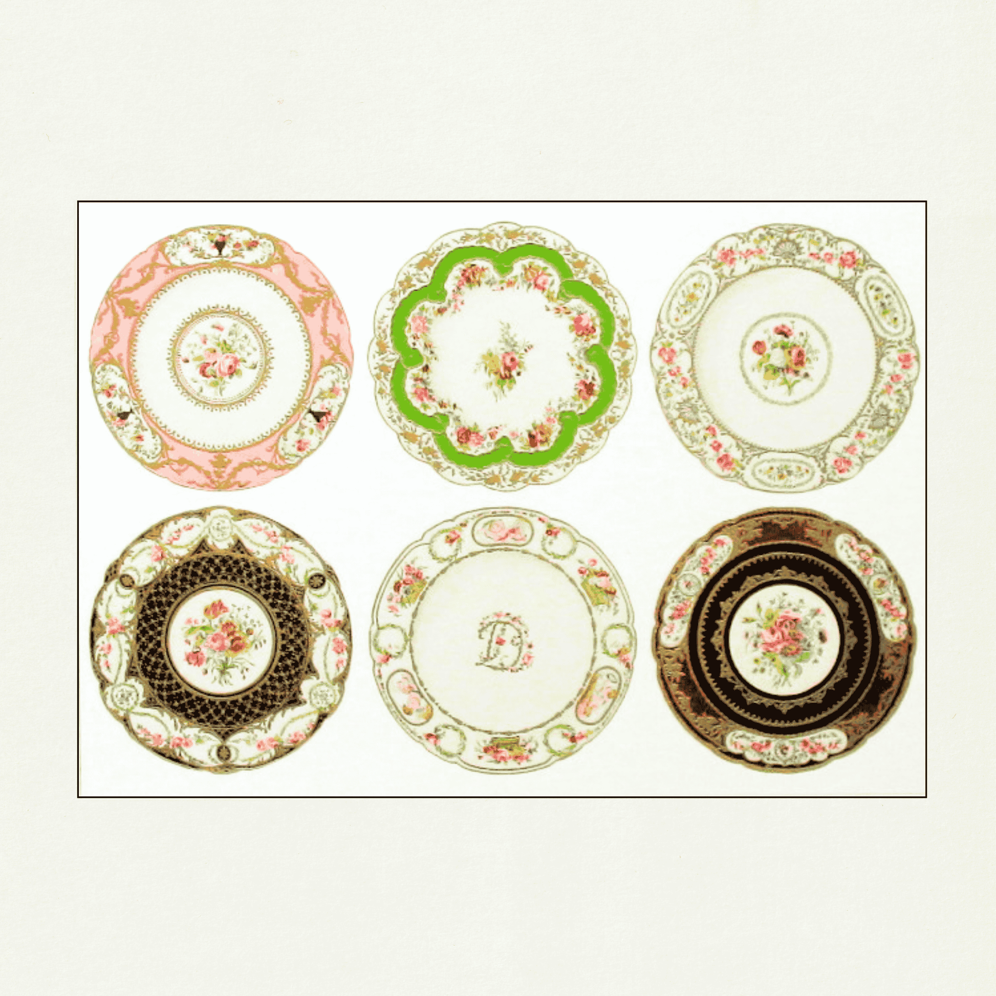 Both our Frech Porcelaine and Oriental Pocelaine come from 19th century lithographic catalogs. While the French Porcelaine was a catalog of items intended for sale, the Oriental Porcelaine book was a catalog of ancient Japanese and Chinese ceramic art.